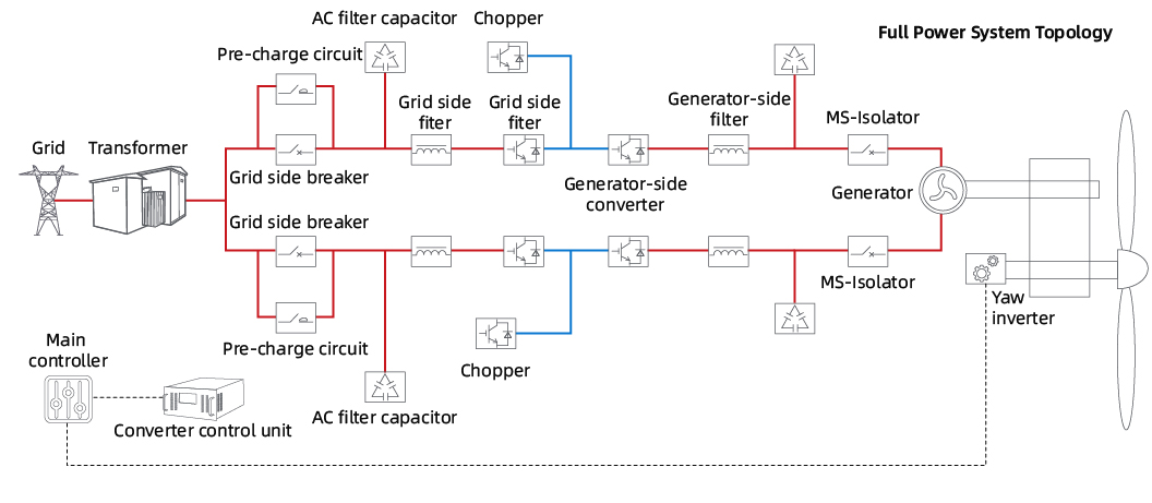 Hopewind's offshore wind power converter inherits and carries forward the high-performance and high-reliability genes of Hopewind converters. It adopts optimized software control algorithms and highly reliable environmental adaptability designs and implements strict product standards. The product uses high-standard corrosion-resistant materials to create a cabinet with a high protection level. It is equipped with a complete heating and dehumidification system inside, which has extremely high tolerance to harsh environments such as salt spray, mold, and vibration. It is equipped with a remote operation and maintenance system, which can perform perfect system monitoring and fault diagnosis and facilitate the networking of wind farm converters. The innovative grid-friendly key technology is suitable for the harsh grid environment caused by long-distance offshore power transmission and the distributed capacitance characteristics of submarine cables, providing guarantee for the continuous and stable operation of offshore wind farms.